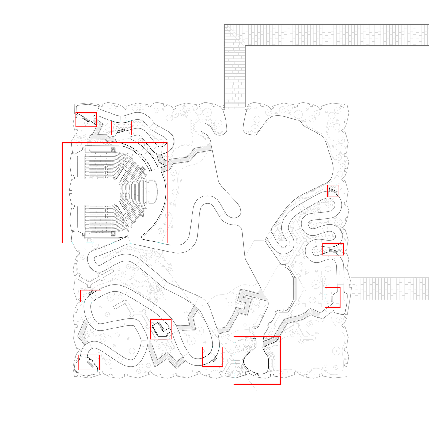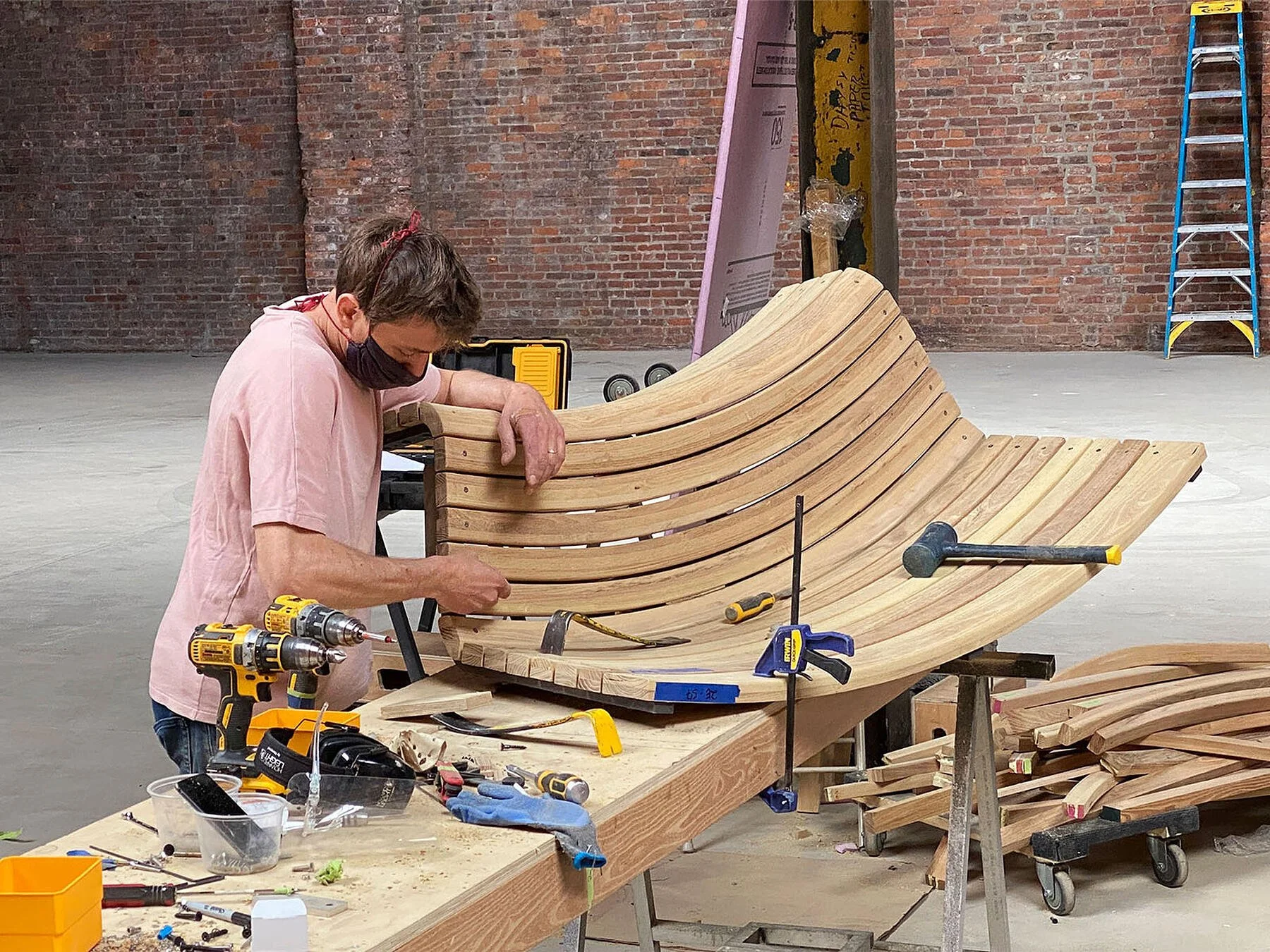 A 700-seat amphitheater for live performances. Comfort was key, so we steam-bent and CNC-milled black locust slats into sculptural seats. Black locust was chosen as a sustainable, durable, and locally sourced hardwood.