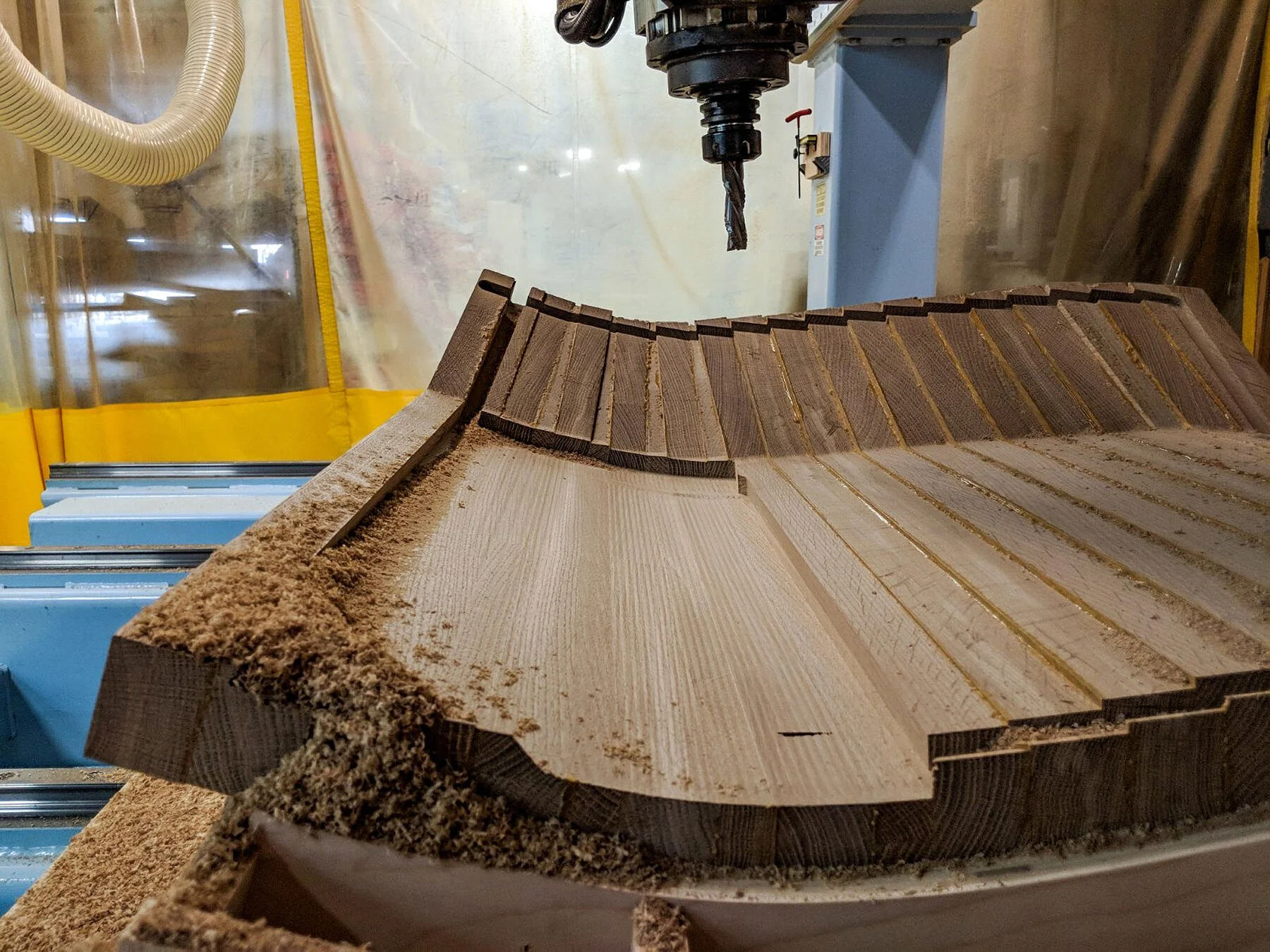 Parts were cut on the CNC, nested and labeled, then stacked onto an armature to form the surface. While the process can be wasteful, it produces spectacular results for certain geometries.