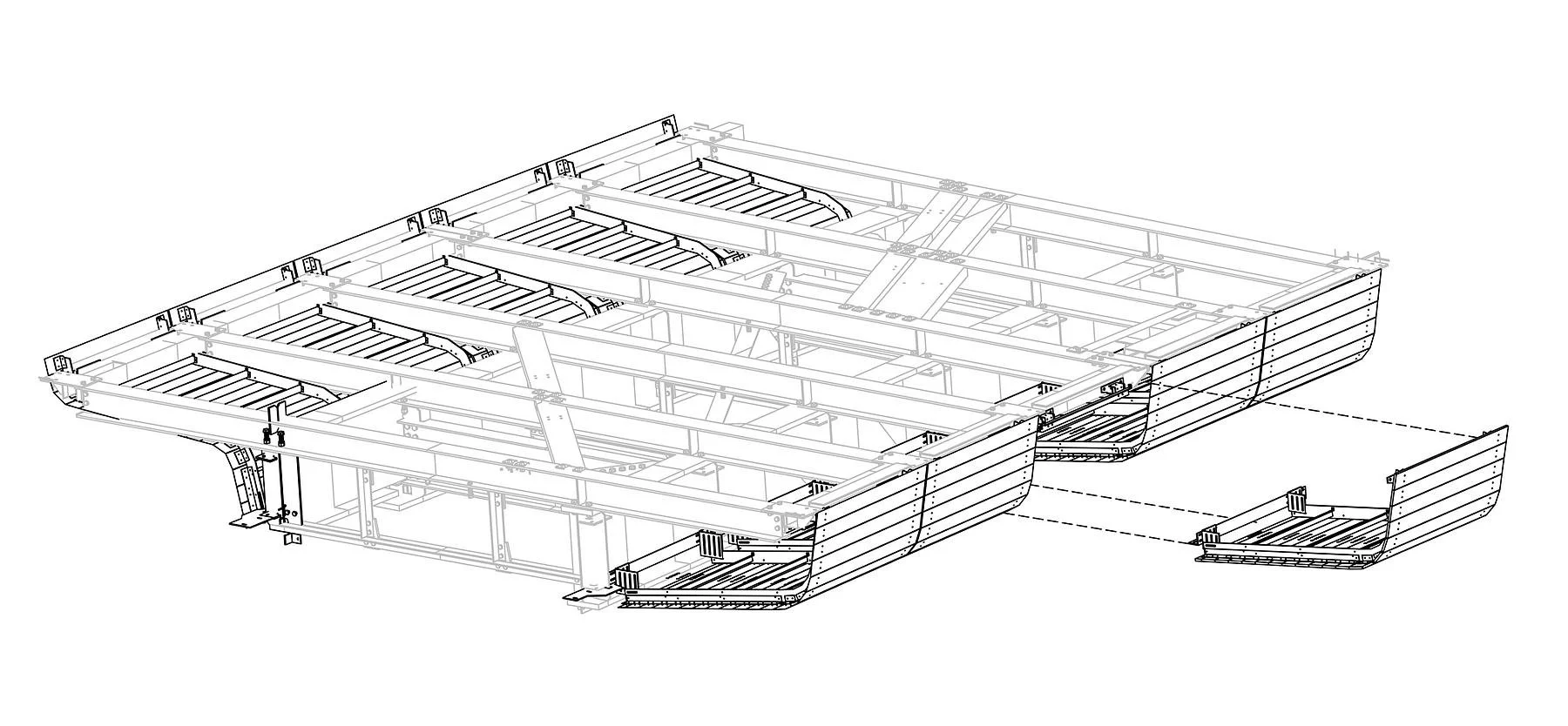 Our role focused on the wood cladding system, comprising 250 unique panels that wrap both sides of the bridge. Each module combined a lightweight stainless steel armature with wana wood, a durable but less dense hardwood chosen over ipe.